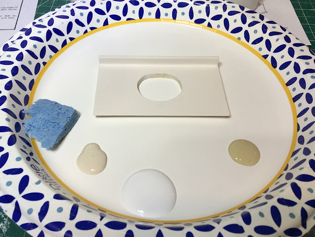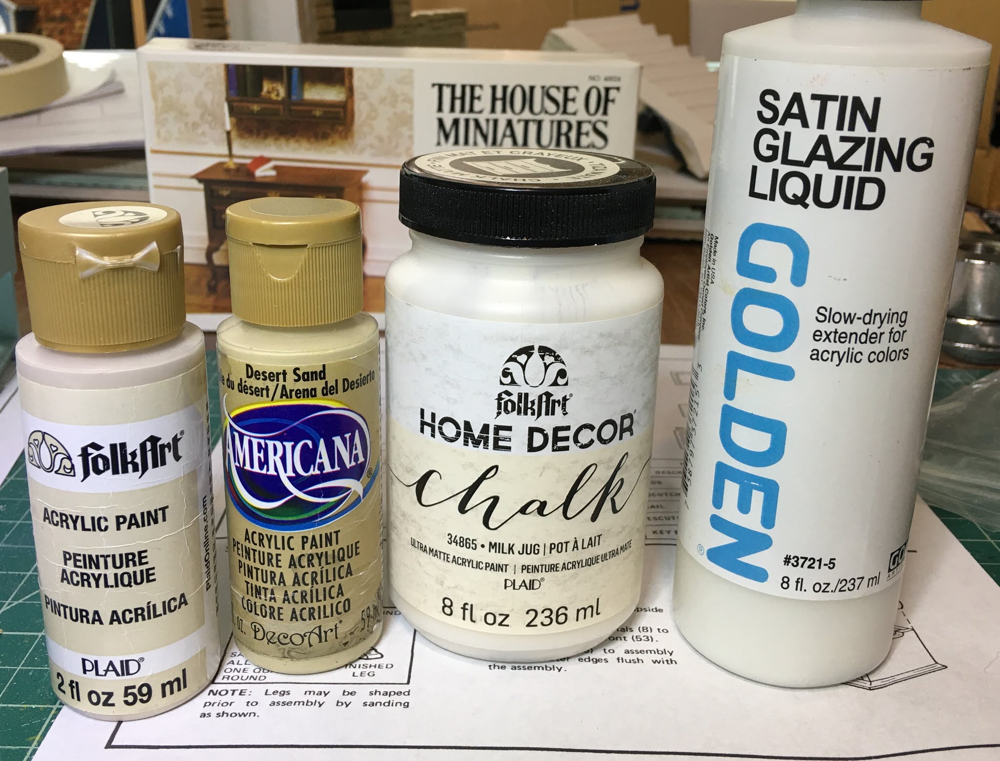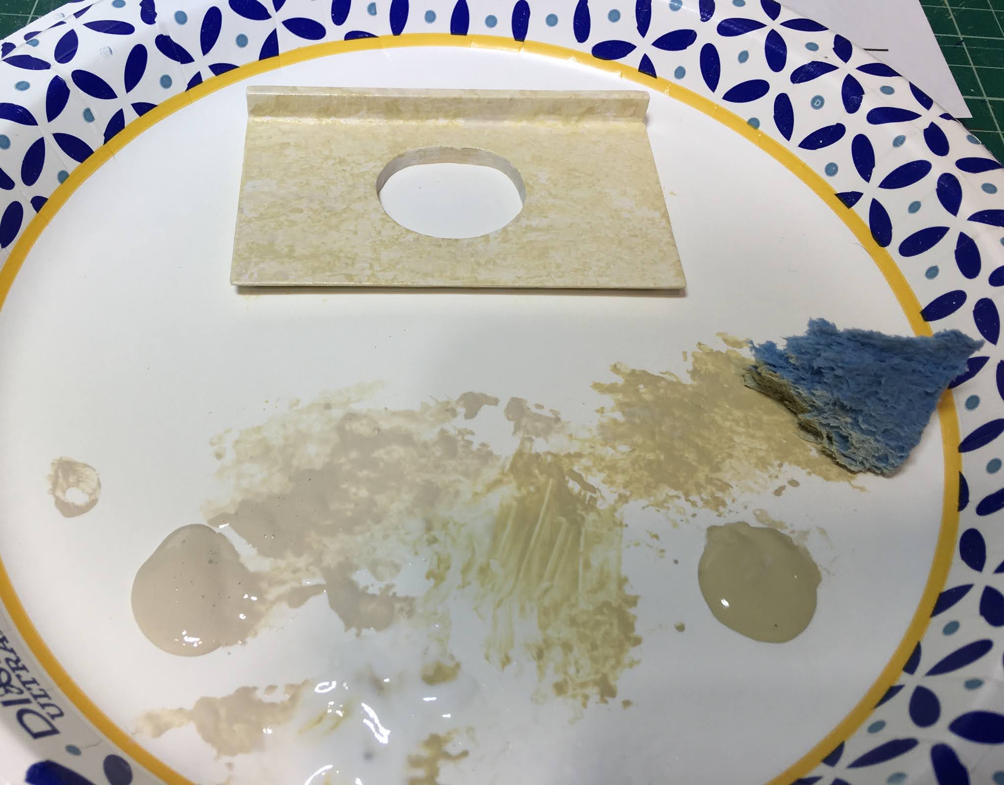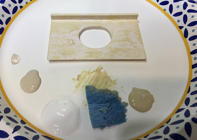 Using the technique that I discovered while playing around with the Storybook Cottage's kitchen counters, I went with the pouncy/sponge/marbling effect using paint and glazing medium.