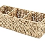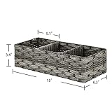 BRAINWAVE - multifunctional bathroom storage organizer from bathroom vanity to toilet tank topper shelf kitchen counter or even pantry This storage basket for toilet tank top for bathroom is perfect for holding tissue paper hand towels toiletries and could be used as over top back of toilet tank tray rustic farmhouse bathroom decor storage bin counter vanity organizerSize 15654inch each slot 635inch Clear storage compartment these toilet paper basket is is made by plastic imitation rattan weave Designed with 3 storage compartments easy to clean and extremely durable for your bathroom Effortlessly store your odds and ends by sorting them to different parts