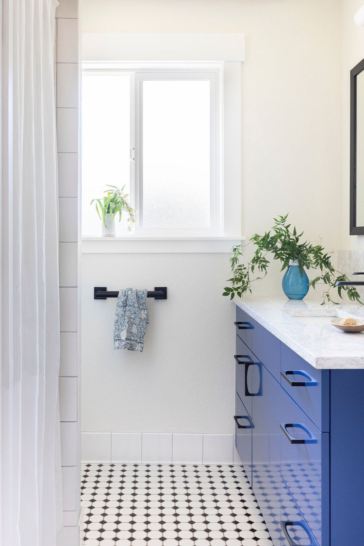 I love this bathroom below that uses a grab bar as a towel bar too. Now that is invisible safety! This bathroom designed by Rachel Waldron of Waldron Designs.