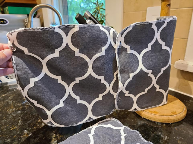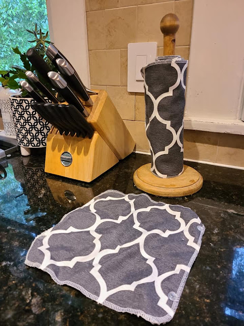 I have been so amazed by how wonderfully well these cloth kitchen towels work. I do still have traditional paper towels on hand, but I rarely use them as I used to. It's so nice to be able to grab a square cloth, use it, and toss it in the wash to be cleaned for its next use.
