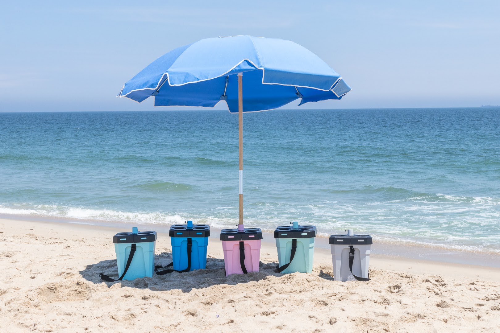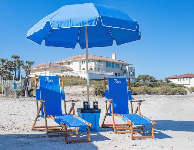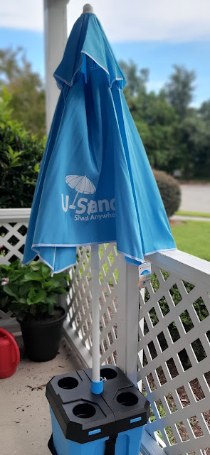 Recently I heard about U-Stand, so I thought I'd check into them. U-Stand provides an awesome way to keep the beach umbrella from blowing away in a gust of wind.. a secure stand that also serves as a cooler!