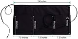 Wide application 236 x 12 unique design black server aprons are perfect for women and men waitress waiter and bartenders Great for cleaning serving nail cooking baking craft gardening and many more Duralbe practical extra long 38 ties can be wrapped from front or back for your comfort 3 large divided pockets for easily holding recipe cards phones pens and more Doublestitching on the edges enhances the half aprons durability