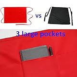 Hi loyaya - The waist apron can protect your clothing from water droplets oil grease and other stains on the job Suitable for cleaning serving cooking baking crafting and gardening The server aprons are doublestitched between pockets to make the bottoms seamless to prevent tearing and holes Each red waist apron with 2 extra long ties 42 to make it suitable for different body sizes and easier to tie in front
